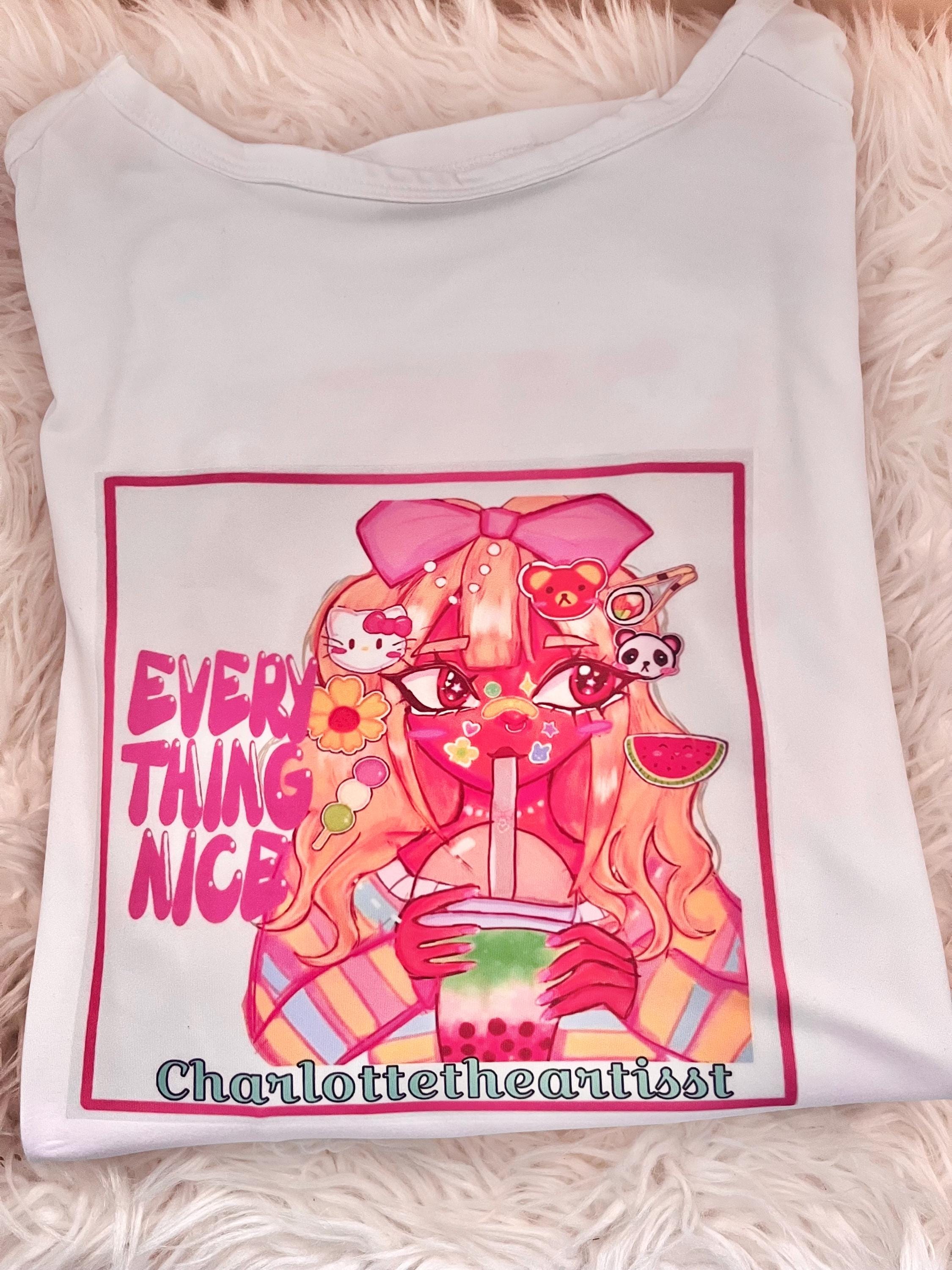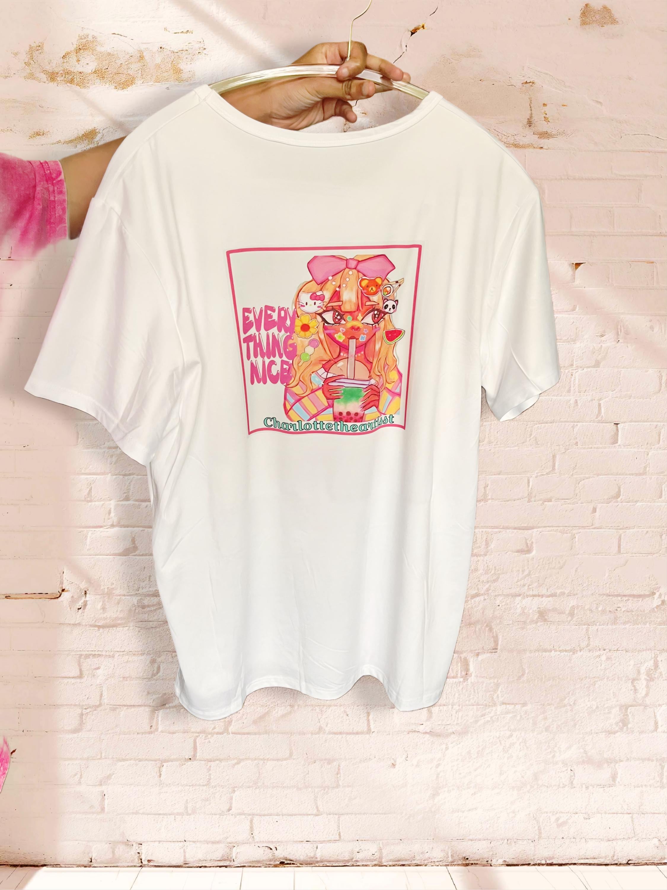 Mizuki (Everything Nice) Orginal Art T-shirt Adult Unisex Size Large White Poly
